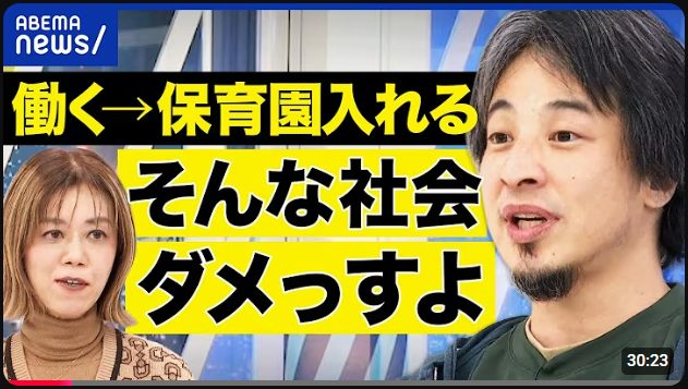 司会:早期の保育園利用。果たしてありなのかなしなのか考えます。はい。ひろゆきさんどうでしょうか?