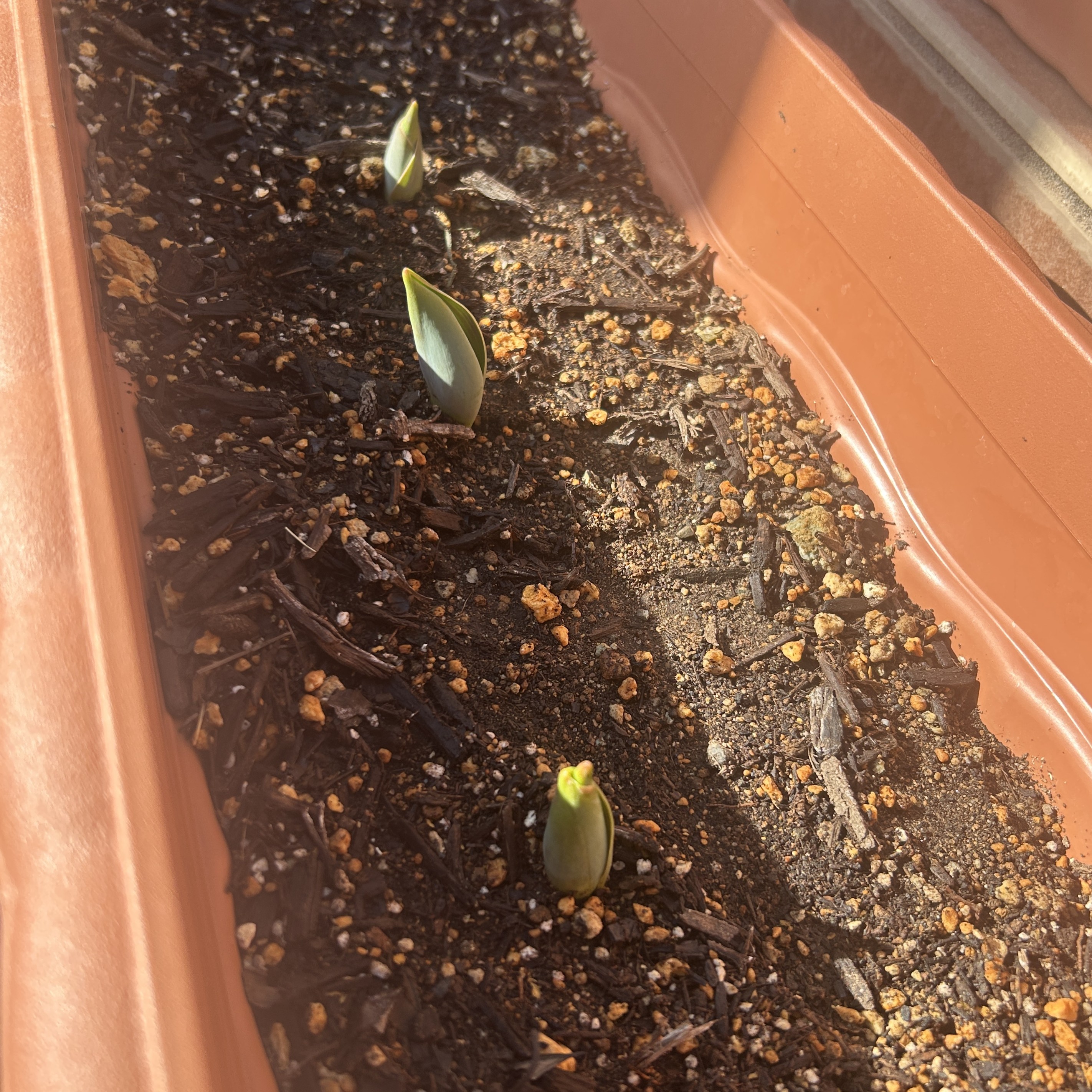 昨年末、球根を買ってきて、娘と一緒に植えました。