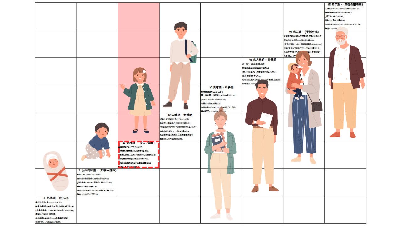 昨日と同じように、幼児期を中心にすると…
